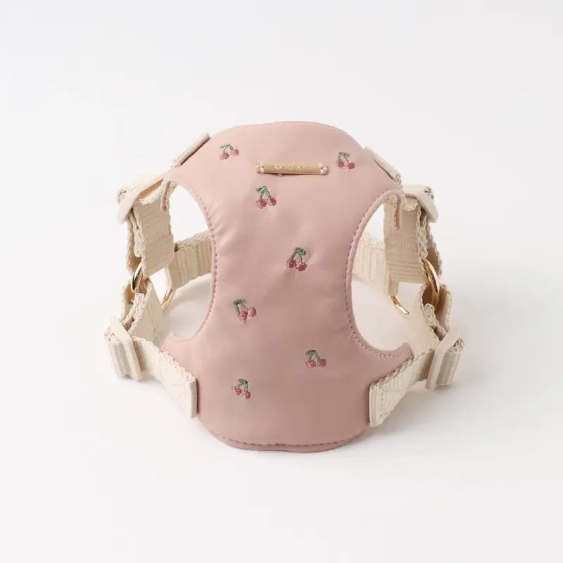 さくらんぼ刺繍ハーネス+リードSET【名入れ刺繍対応】