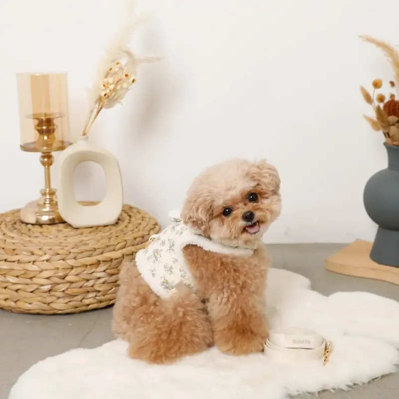 スカラップカラー花柄キルティングハーネス+リードSET【名入れ刺繍対応】