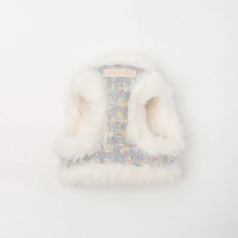 ツイードチェックファーハーネス+リードSET【名入れ刺繍対応】