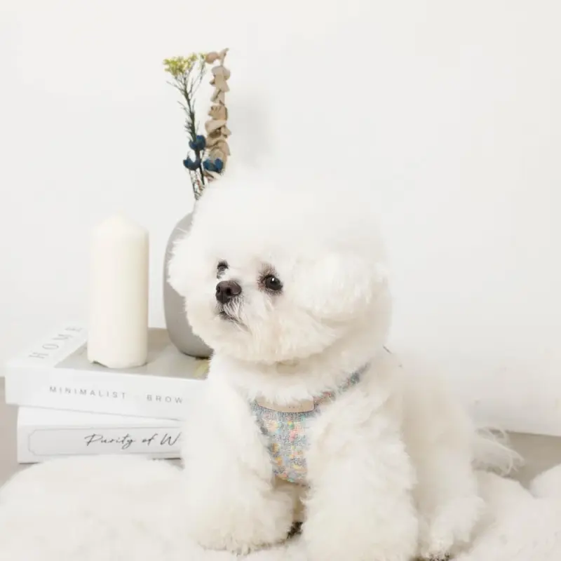 ナチュラルフラワーハーネス+リードSET【名入れ刺繍対応】