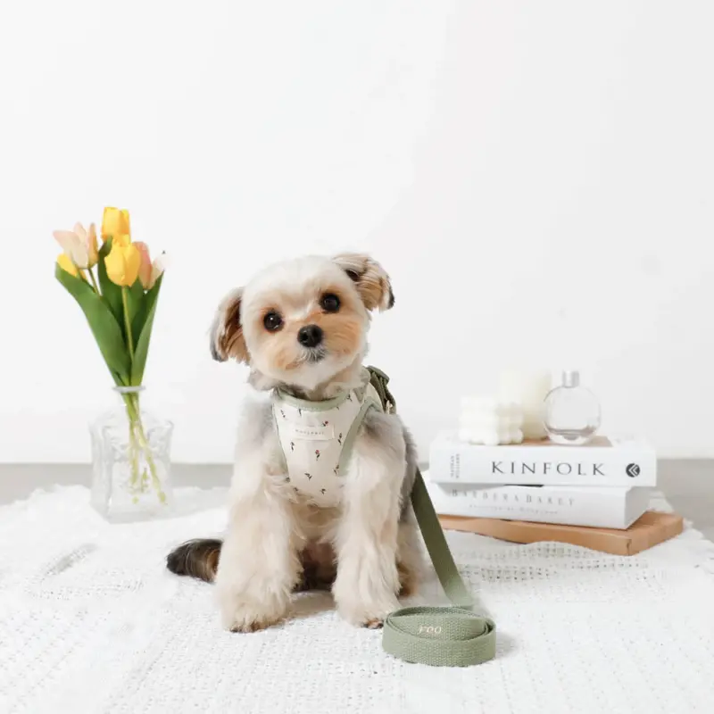 ナチュラルフラワーハーネス+リードSET【名入れ刺繍対応】【旧モデル】