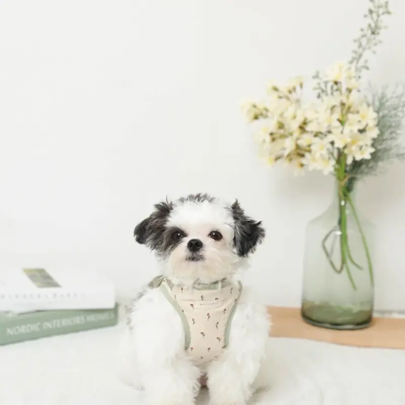 ナチュラルフラワーハーネス+リードSET【名入れ刺繍対応】【旧モデル】
