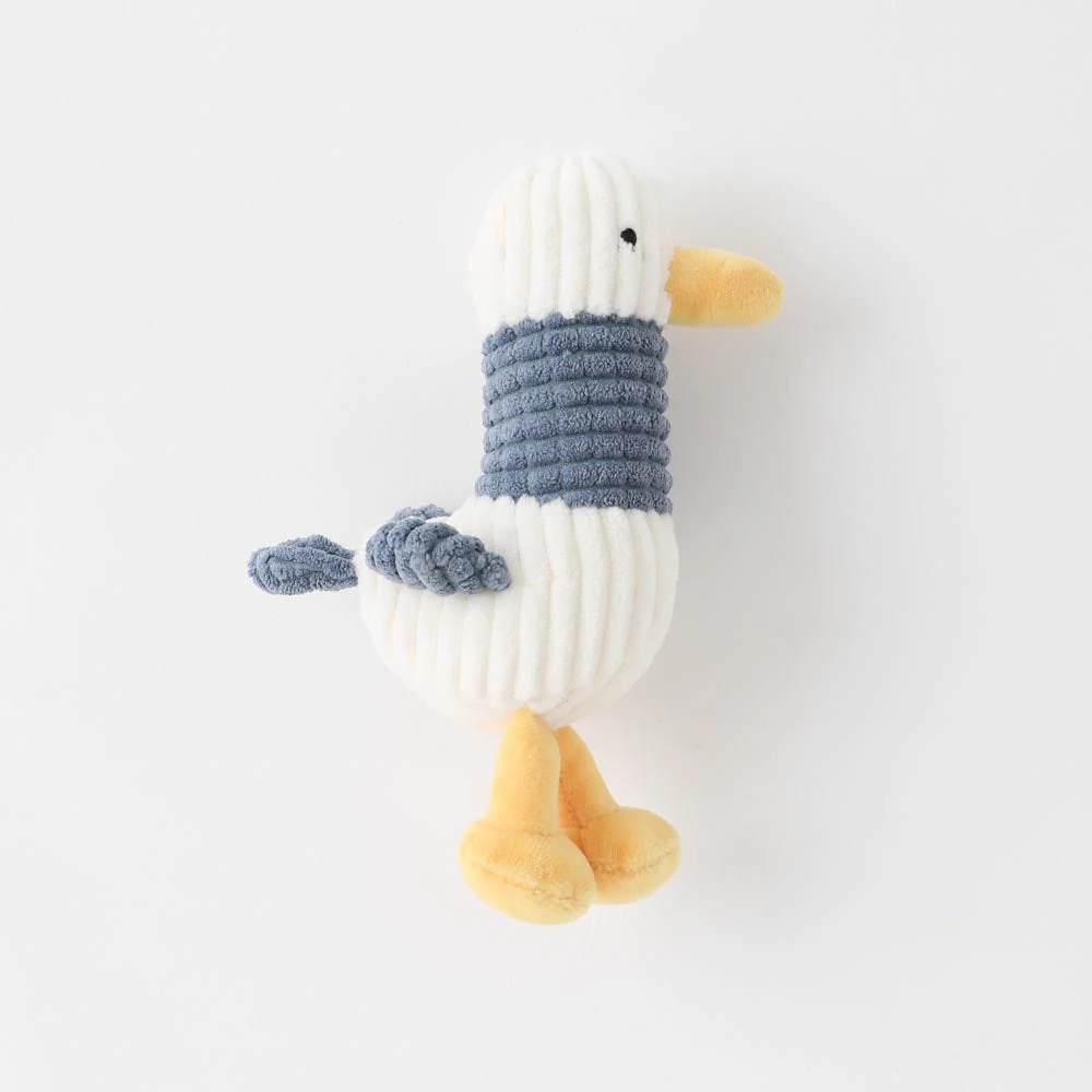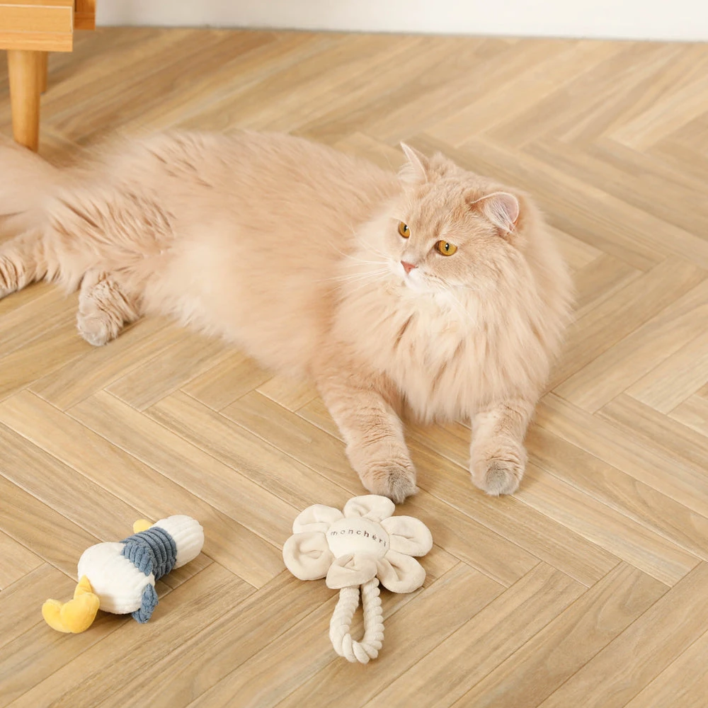 首の長いあひるのデザインは、単にかわいいだけでなく、ペットが咥えやすく、振り回しやすい形状を追求した結果です。適度な柔軟性と弾力性により、ペットの顎や歯に負担をかけません。