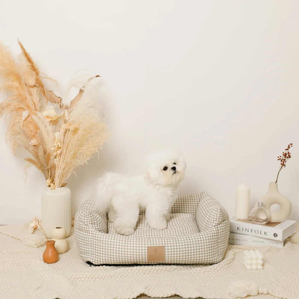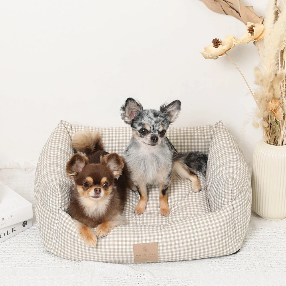 ギンガムチェッククッションベッド:愛するペットのための最高級休息空間