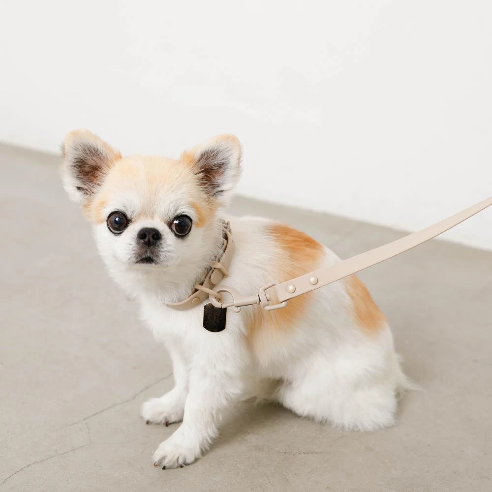 カラーの形状は、愛犬の首周りにフィットするよう立体的に設計。締め付け感が少なく、自然な動きを妨げません。バックル部分はワンタッチで着脱可能ながら、誤って外れる心配のないセーフティ機構を採用しています。