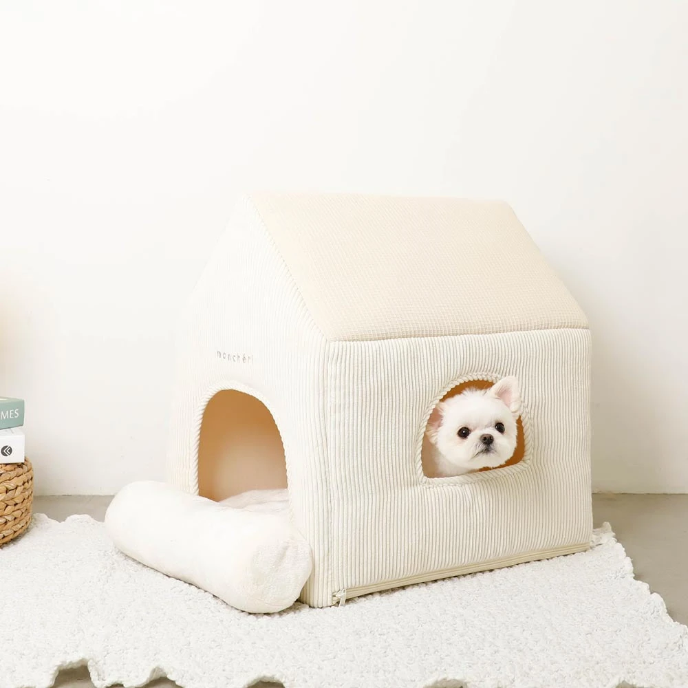 ナチュラル小窓付きコーデュロイペットハウス:愛するペットのための至福の休息空間