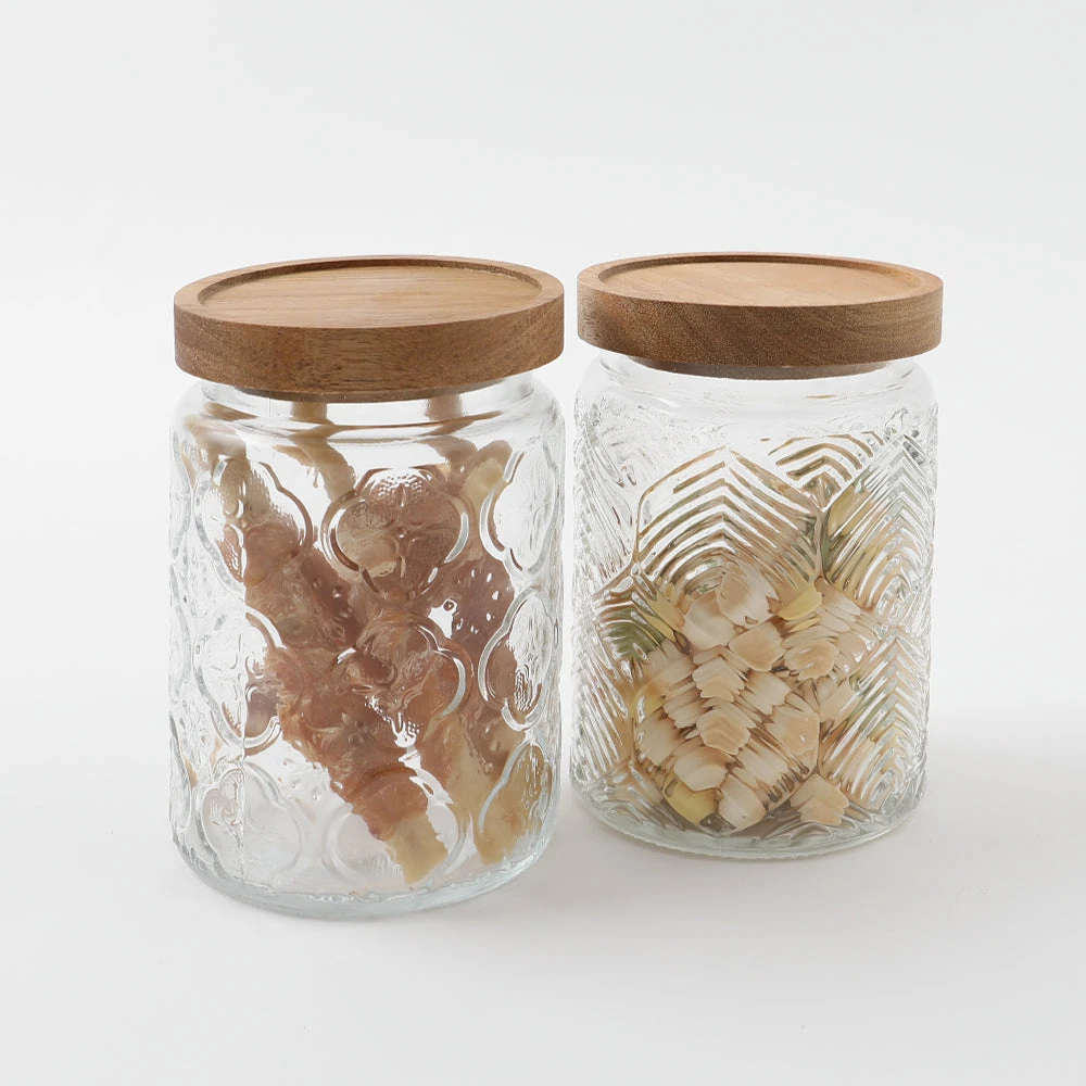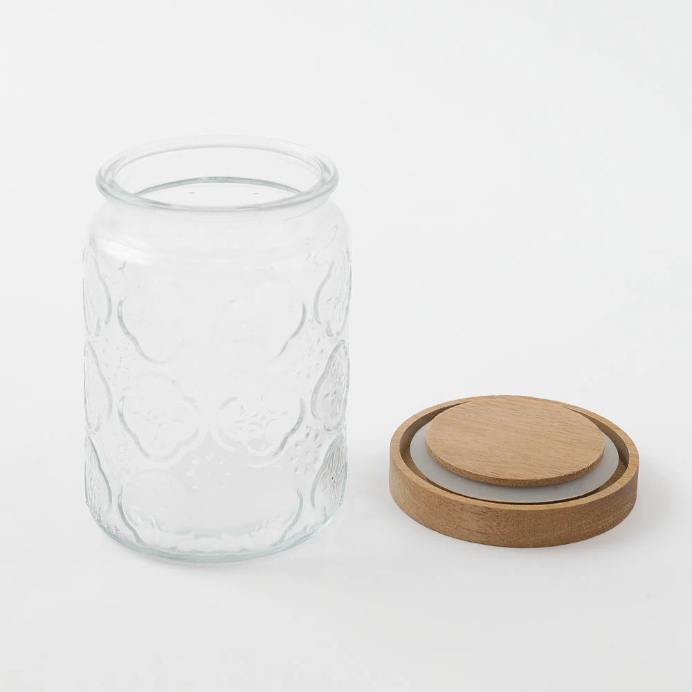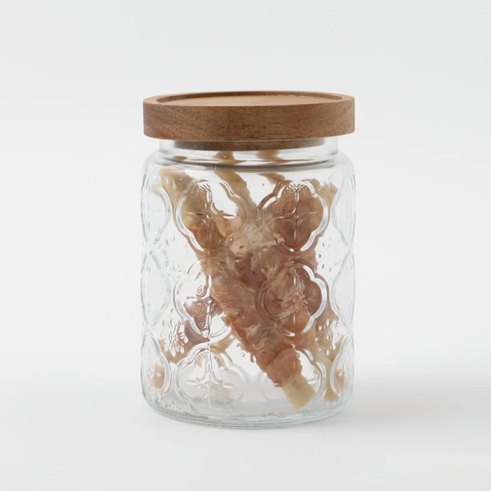レトロ柄ウッド蓋ガラスキャニスター:美しさと機能性の調和