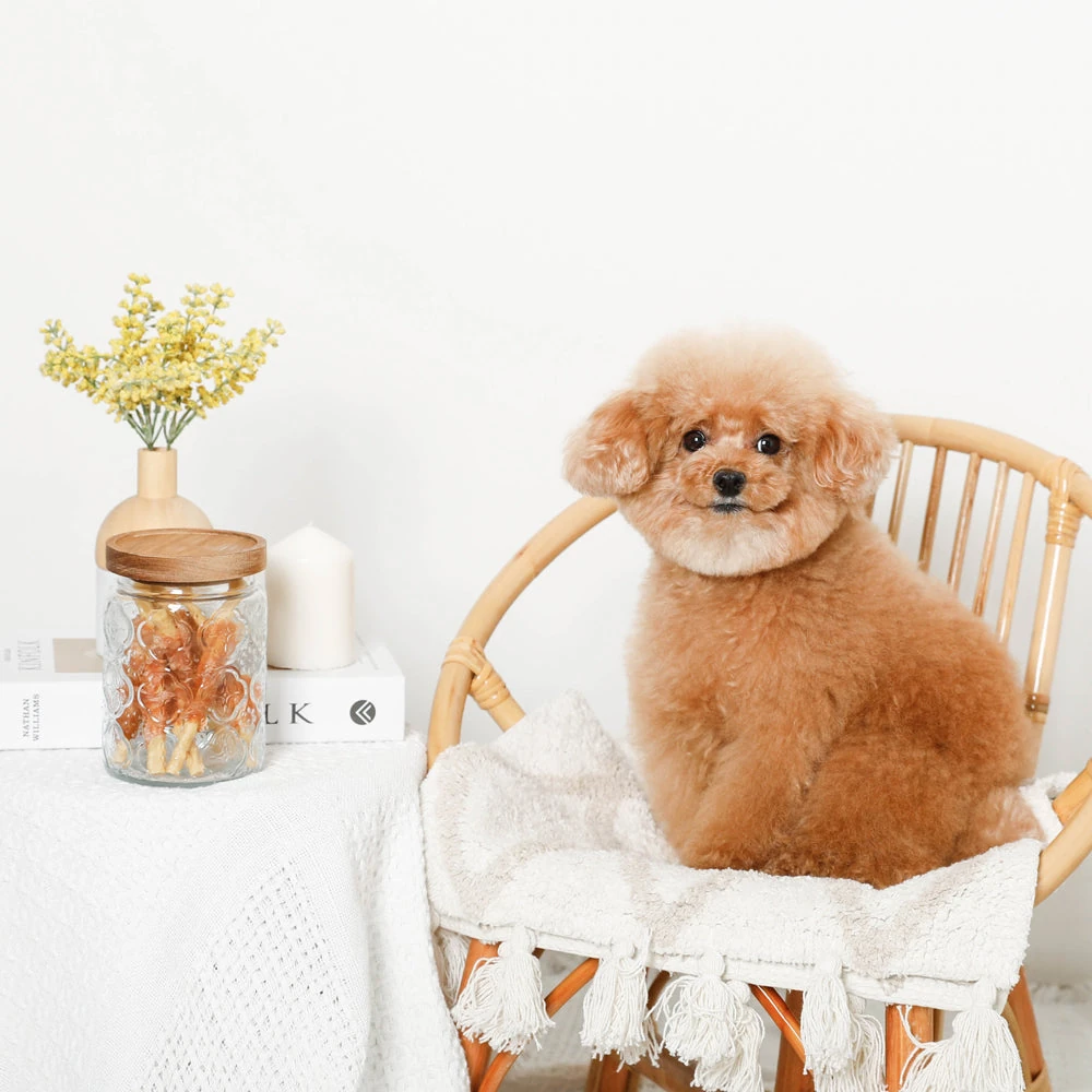 新商品発売を記念し、特別価格$2,480にてご提供中。この機会に、美しさと機能性を兼ね備えた「レトロ柄ウッド蓋ガラスキャニスター」をお試しください。ペットとの生活をより豊かでスタイリッシュにする、こだわりの一品です。