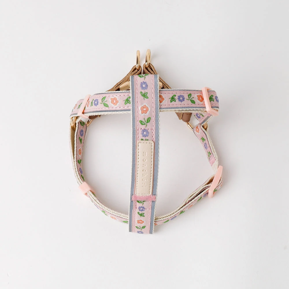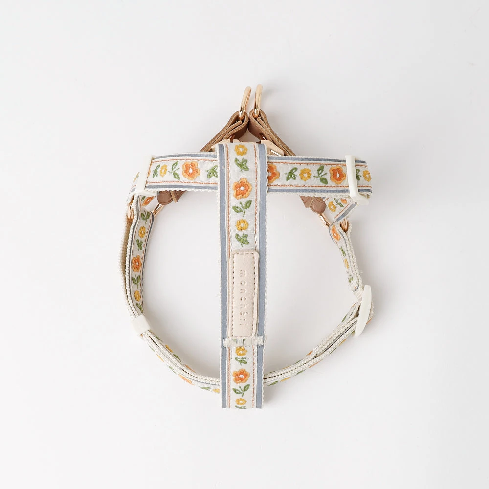 反射フラワー刺繍ハーネス+リードSET【名入れ刺繍対応】
