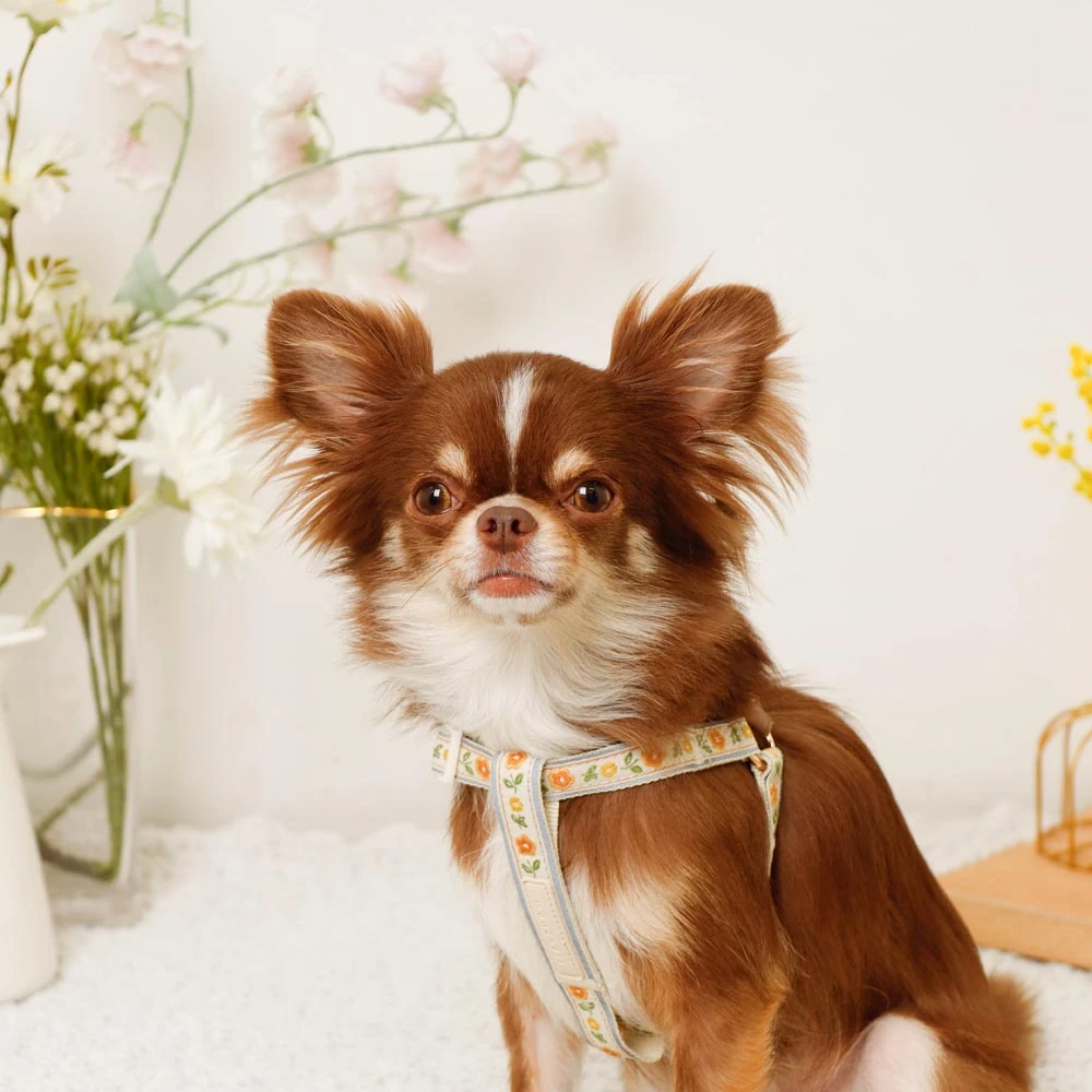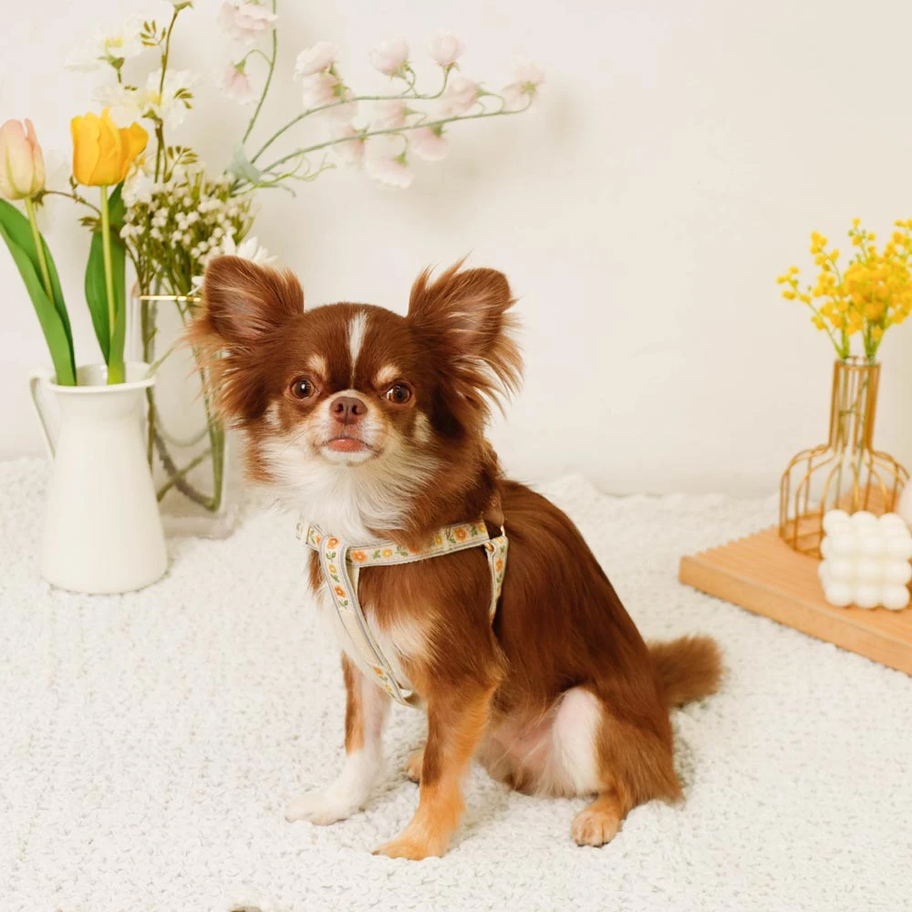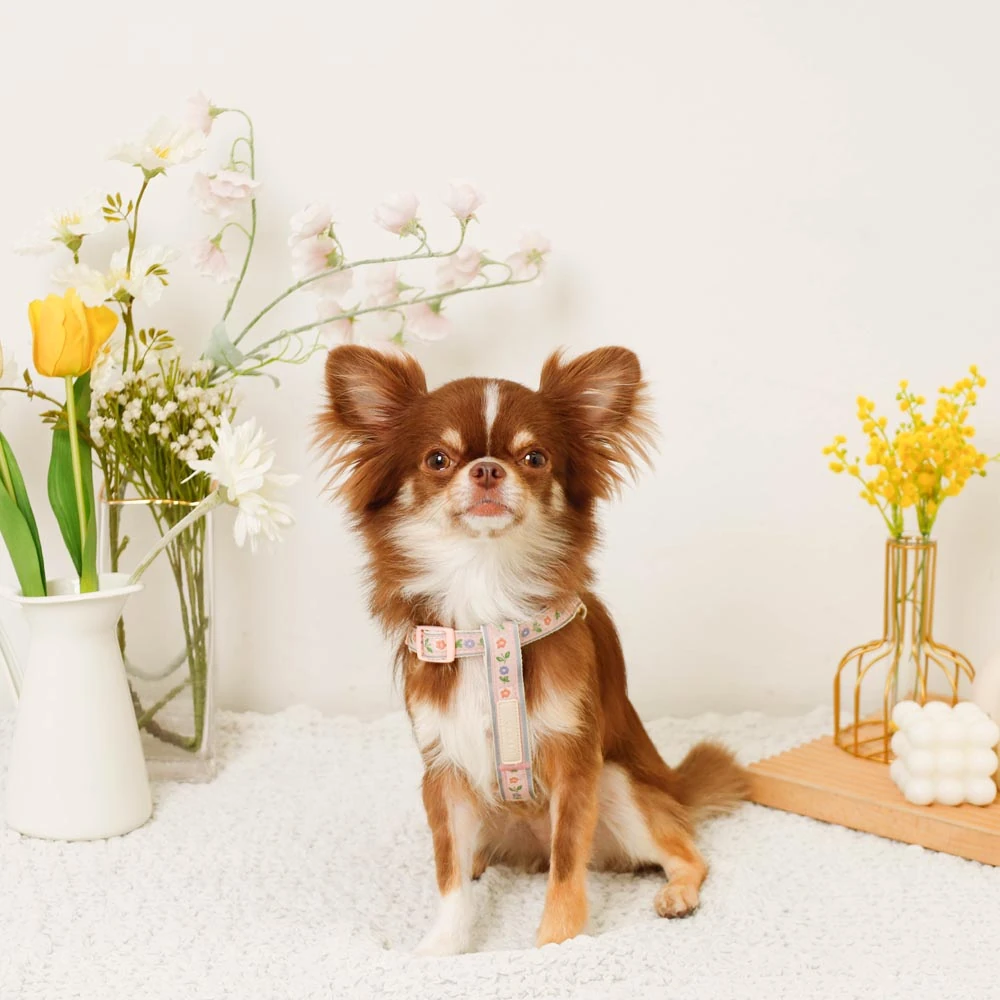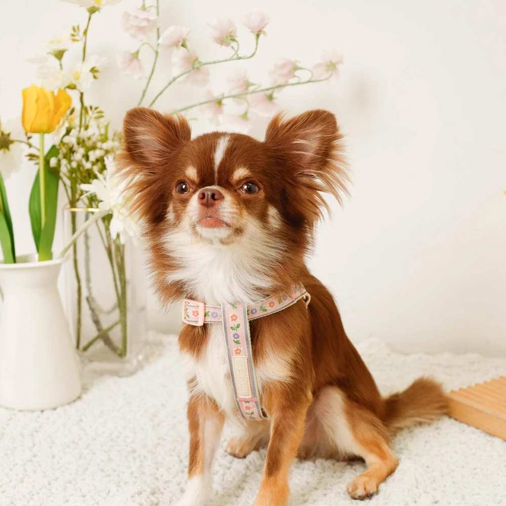 愛犬の安全とおしゃれを革新する反射フラワー刺繍ハーネス+リードSET