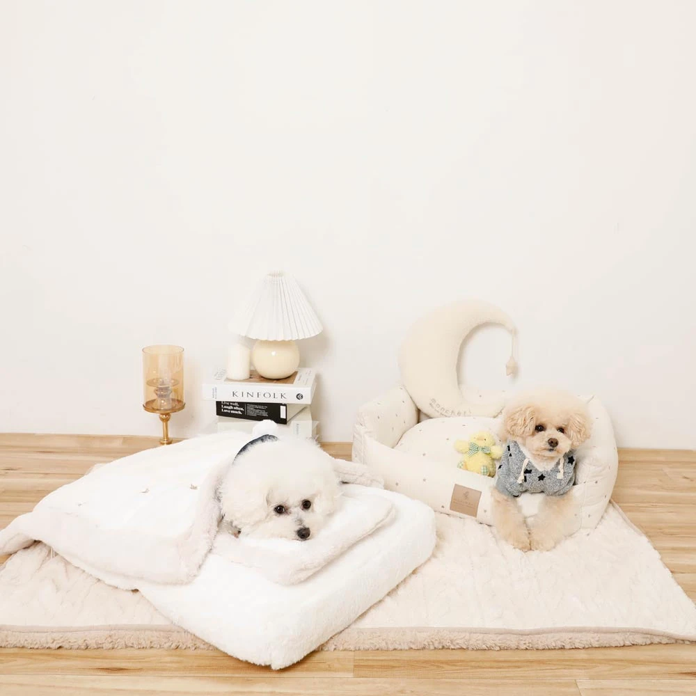 お星さまとお月さまのモチーフは、どんなインテリアにも溶け込む上品なデザイン。刺繍の細部までこだわり、高級感のある仕上がりを実現しています。ペットの寝床としてだけでなく、お部屋のアクセントとしてもご活用いただけます。