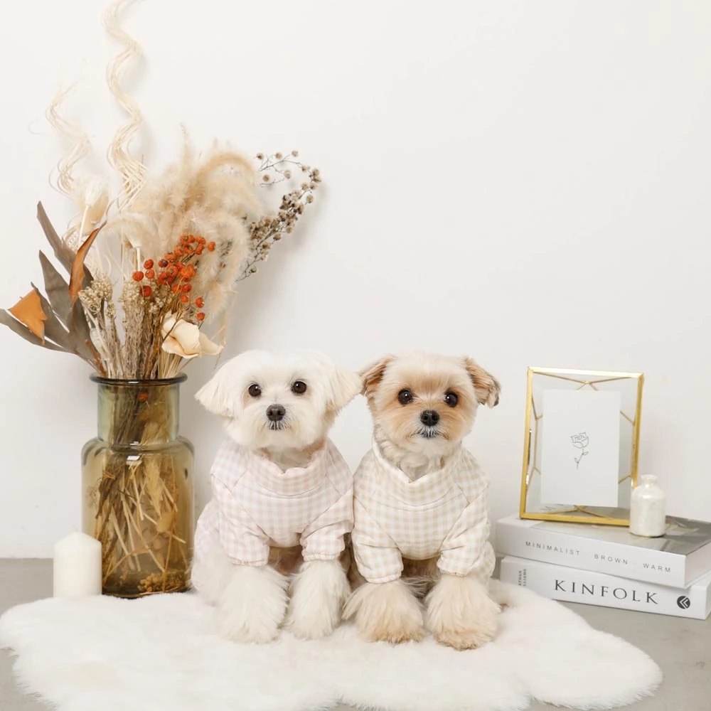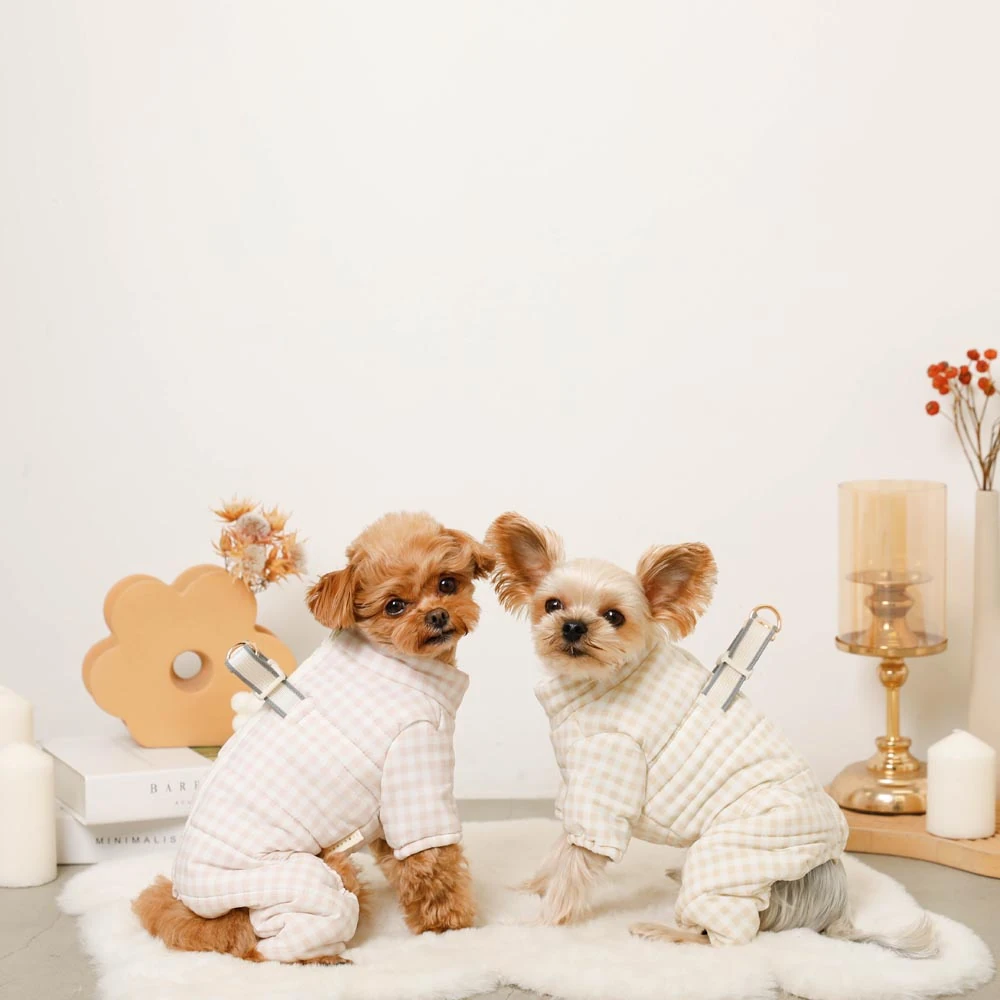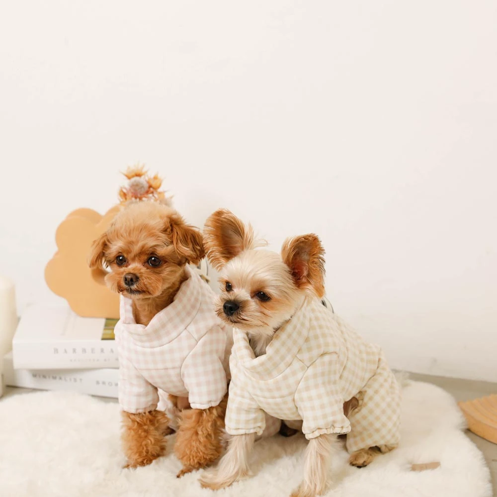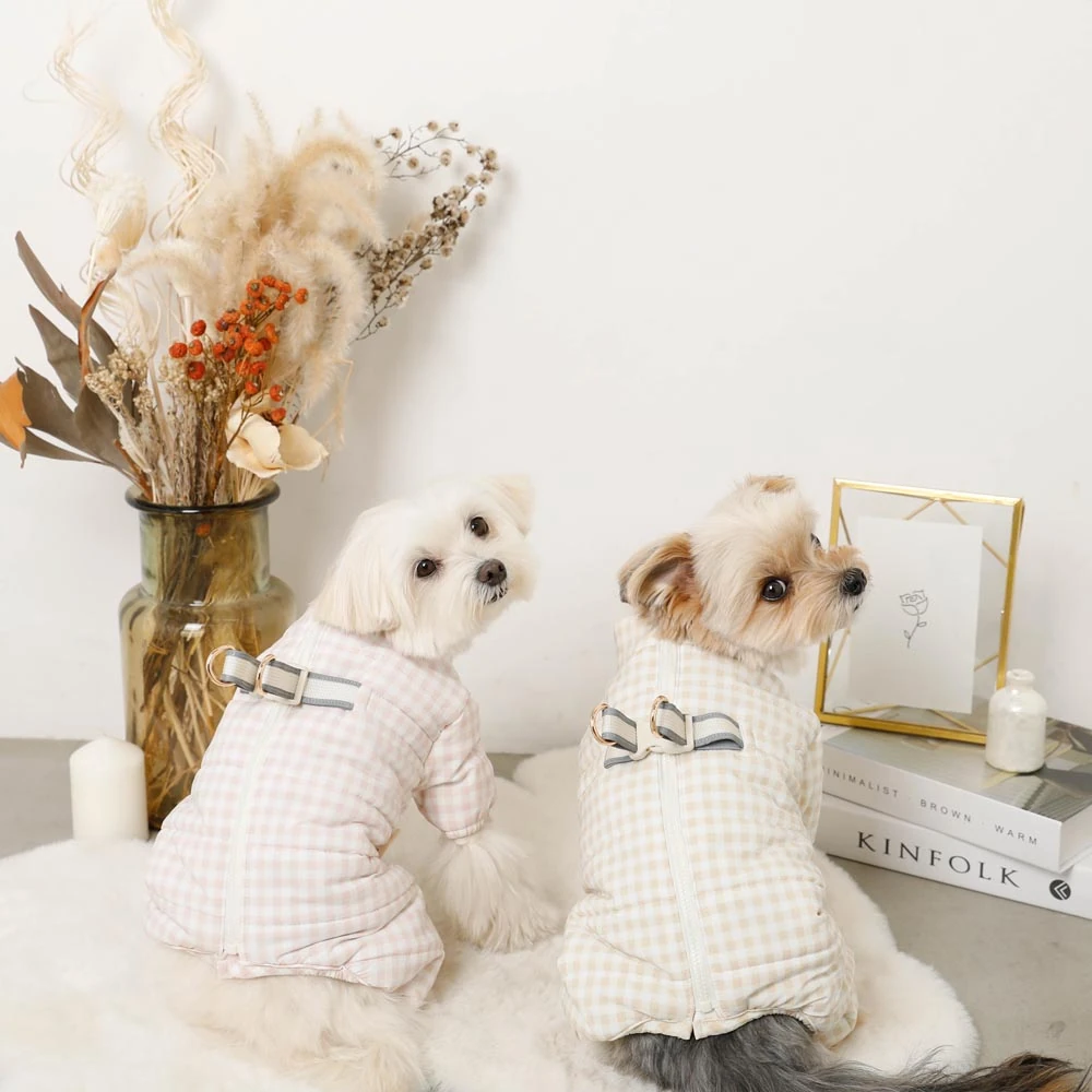 遠赤外線ギンガムチェックロンパースハーネス:愛犬の健康とおしゃれを両立する究極の選択