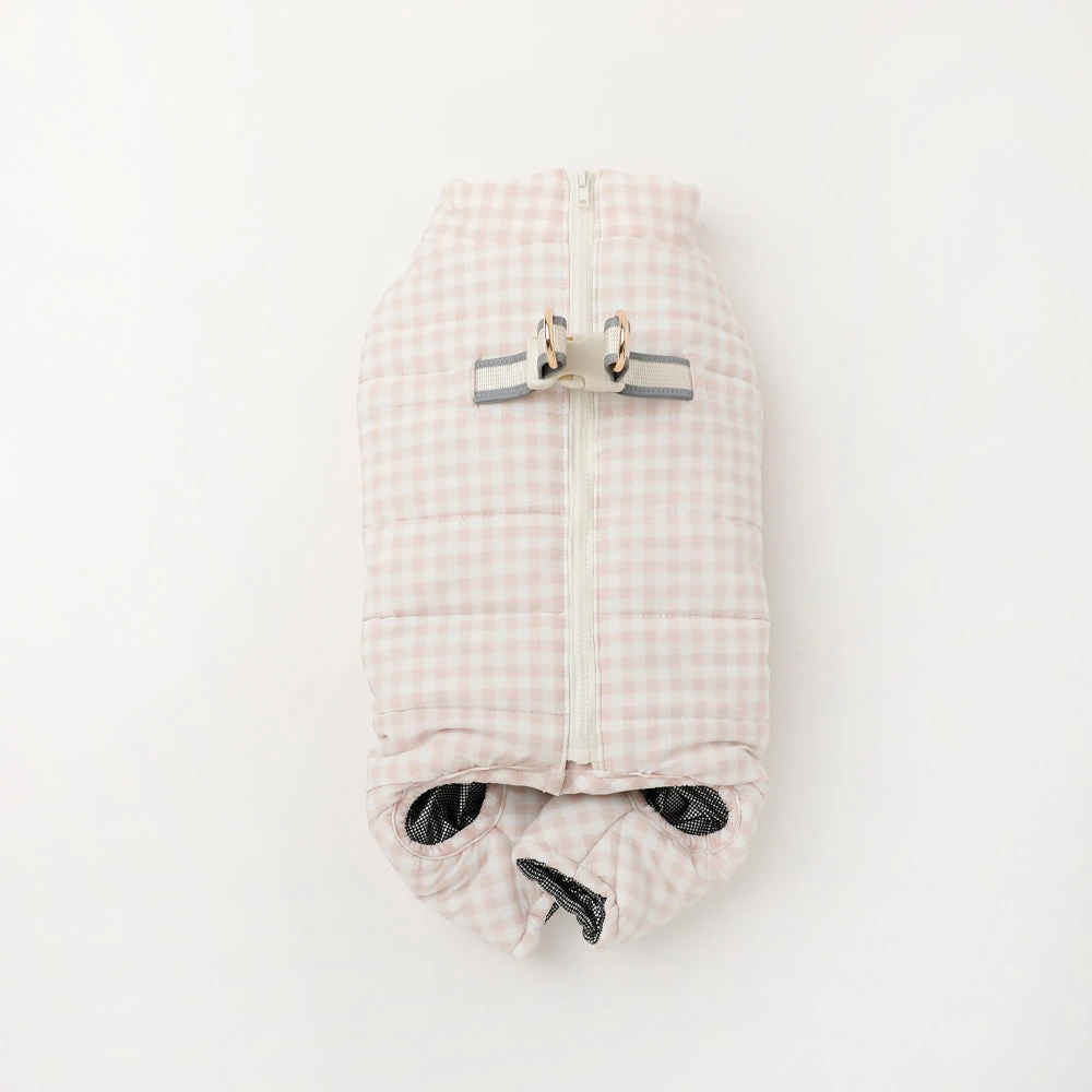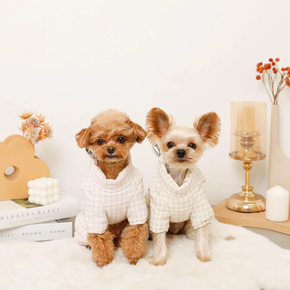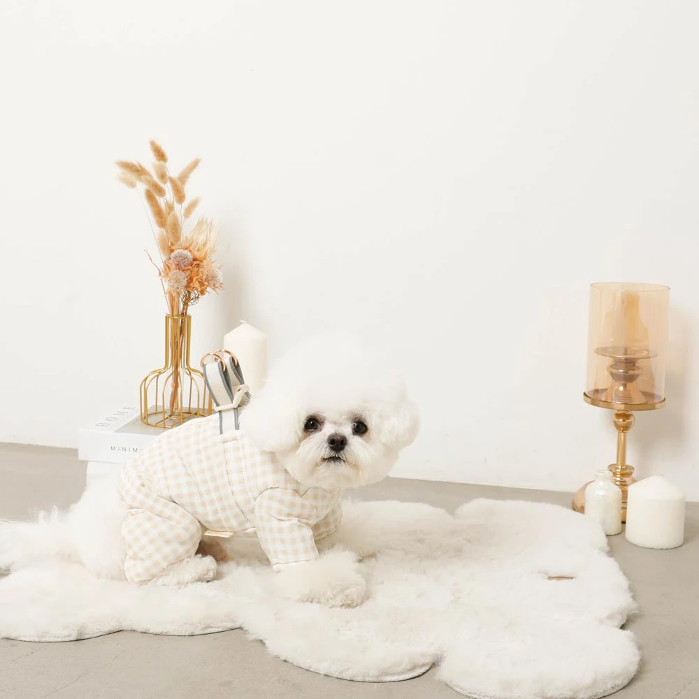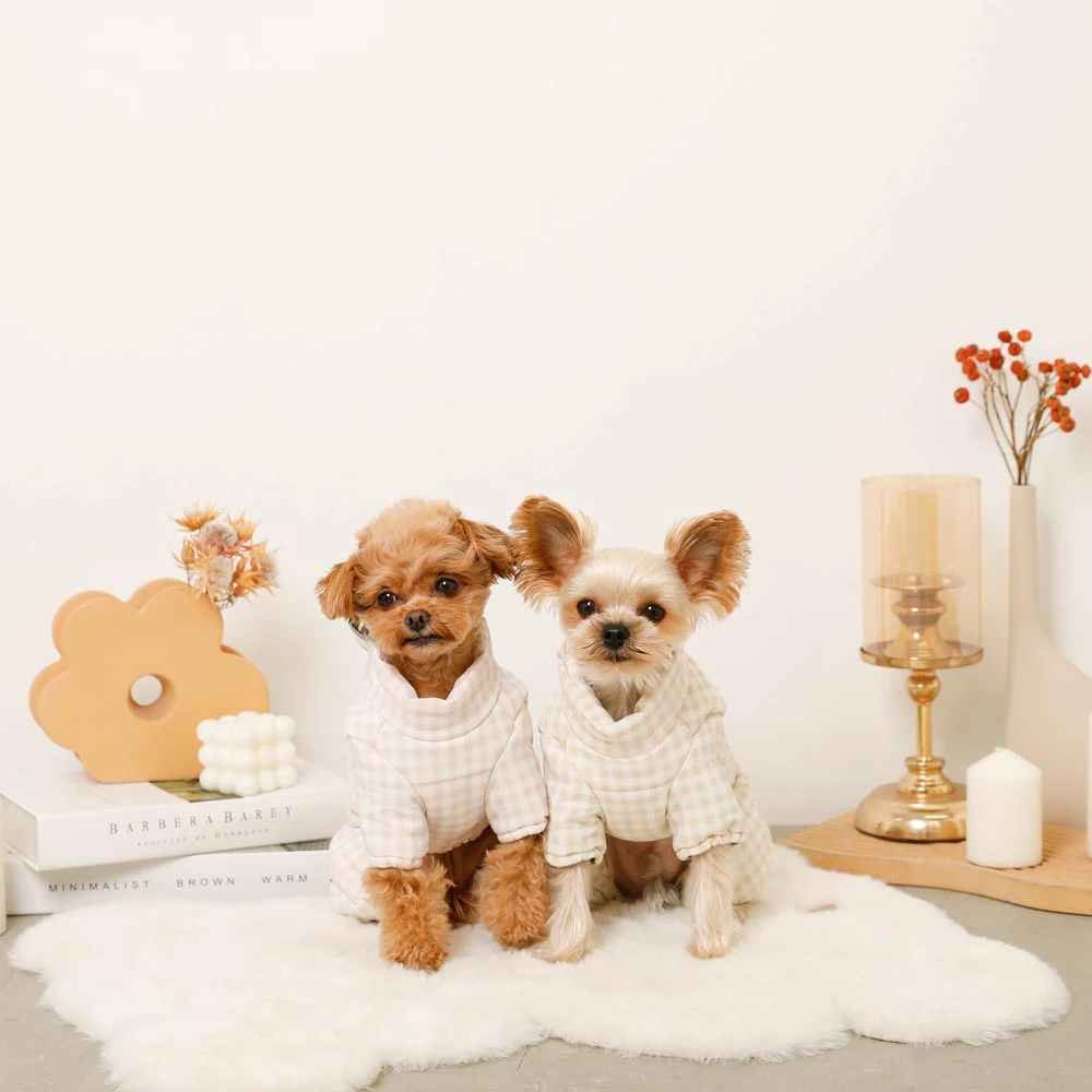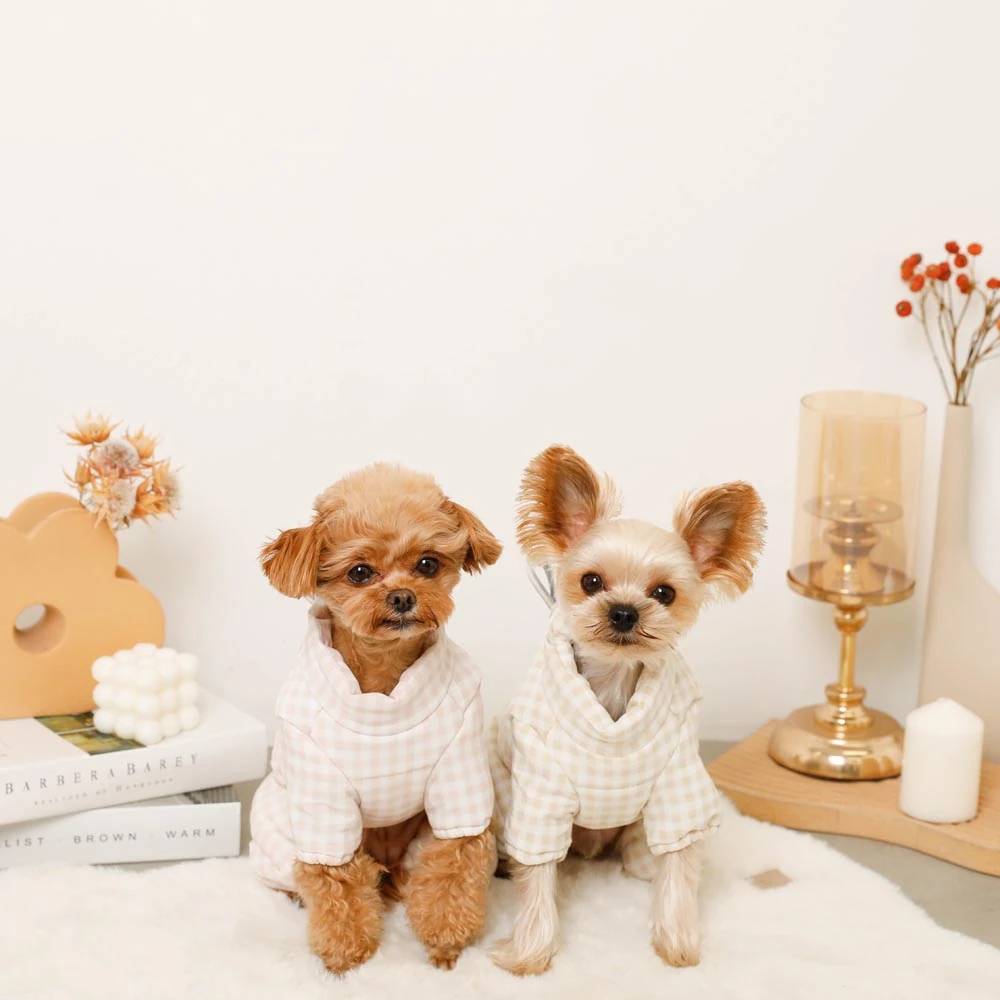 遠赤外線ギンガムチェックロンパースハーネス:愛犬の健康とおしゃれを両立する究極の選択