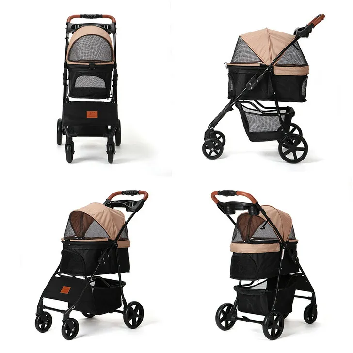 ペットキャリーカート ペットバギーミニ 4輪タイプ 犬介護用カート 猫用ベビーカー 前輪360°回転 後輪ブレーキ付 飛び出し防止 軽量 ワンタッチ開閉 組み立て簡単 耐荷重15KG